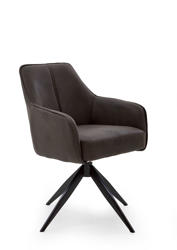 Komfort-Schalensessel (1662-04-425) 05312112: 425-Microfaser Aberdeen stone, Stativ-Gestell Eisen schwarz, Sitz mit Micro-TFK, 360° drehbar mit Rückholfunktion