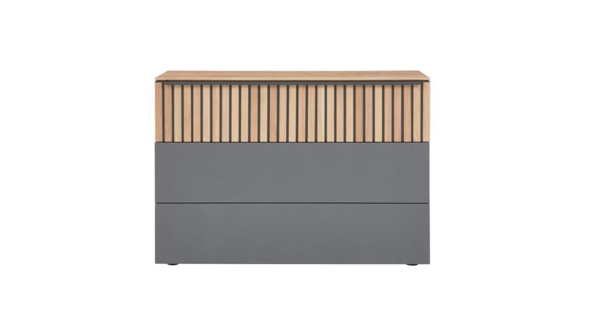 Kommode Interliving 1029: Lack graphit Absetzung Wildeiche massiv Griff/Füße Metall Eisenglimmer