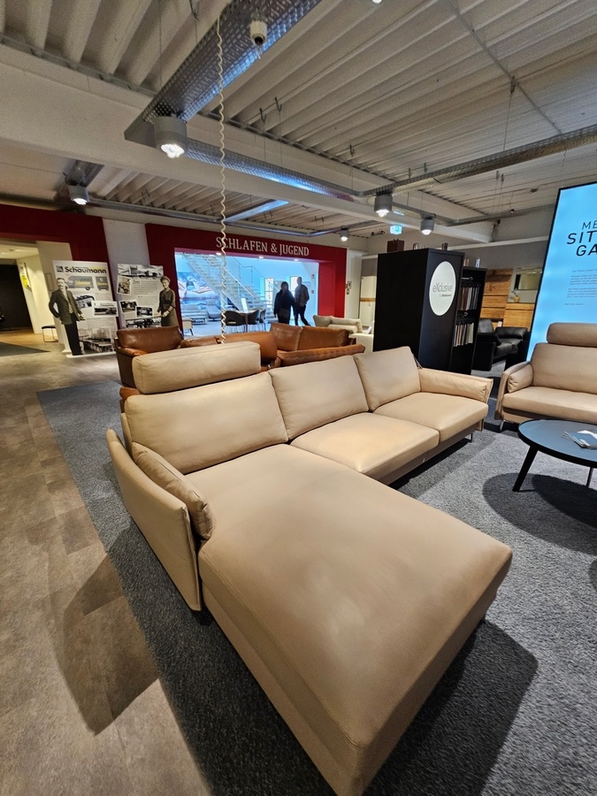 Ledergarnitur eXclusive 05550001 XC: Leder Touch J/stone, Doppelsteppnaht Rückenkissen A, Sitzkissen G Comfort Plus Fuß 59 Aluminium, SH/ST ca. 43/58cm