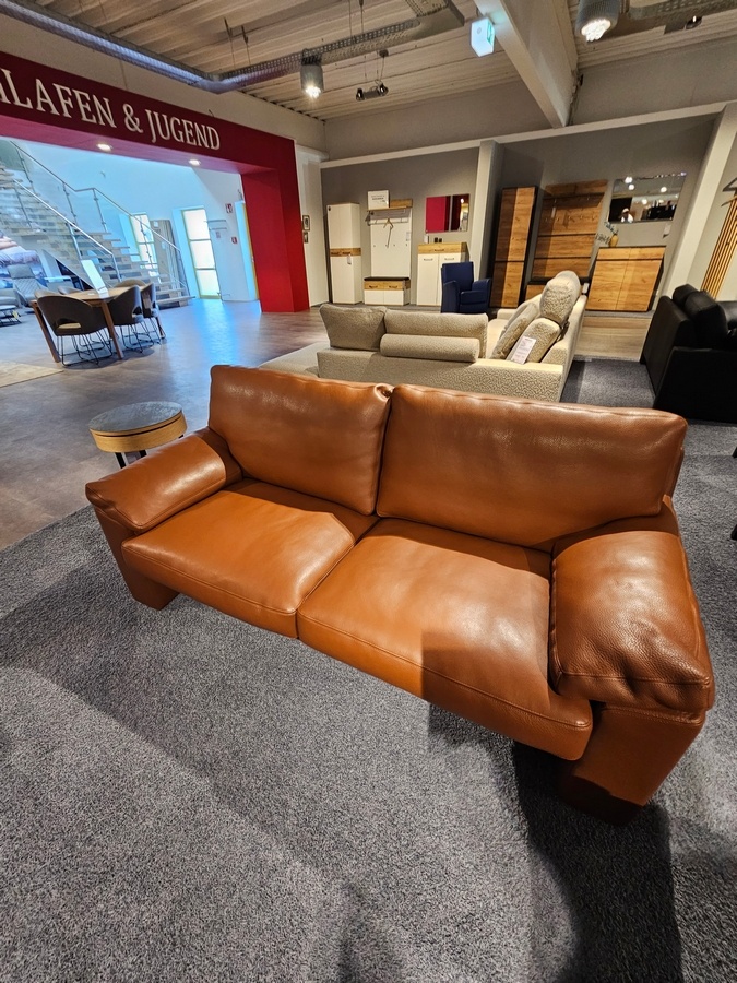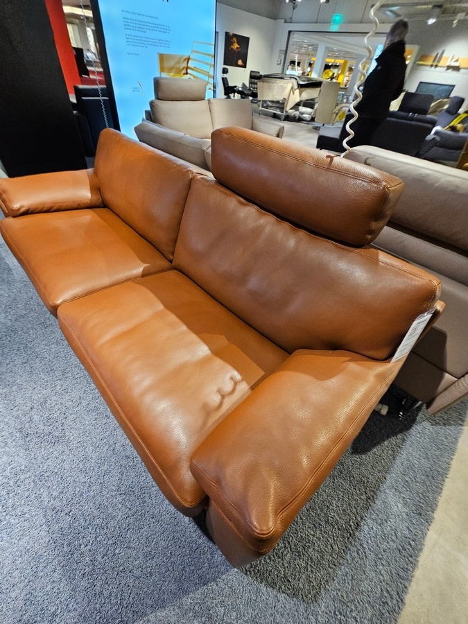 Ledergarnitur eXclusive 05550004 XC: N/tabac Nature 850, Doppelsteppnaht Rückenkissen A, Sitzkissen A Daunencharakter Kunststoffgleiter, SH ca. 43cm