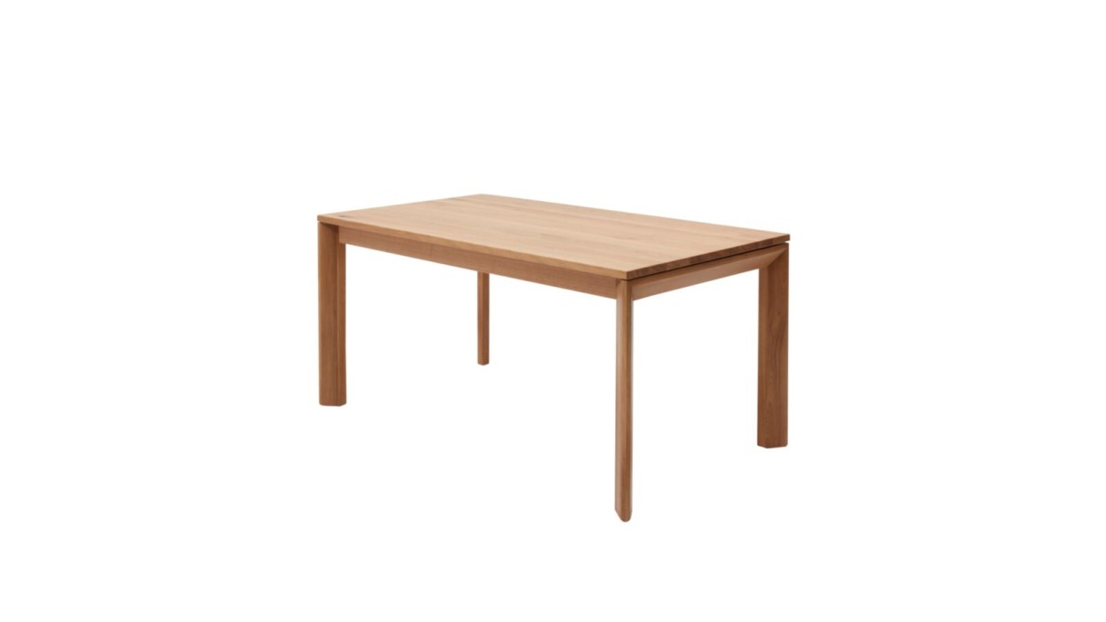 Manufaktur-Tisch Interliving 5102: V913-49-057 Eiche bianco massiv, geölt. Gestellauszug m. Falteinlage 100cm, schräg stehende Füße m. Zargenblende