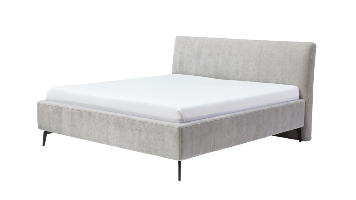 Polsterbett ca. 180x200cm Interliving 1416: PG3/331002 Balu silber, kubisch 29cm, zerlegbar, BK2 Längsöffnung gelocht, KT22968M, Rücken unecht, Metallfuß W010 Metall schwarz H18cm