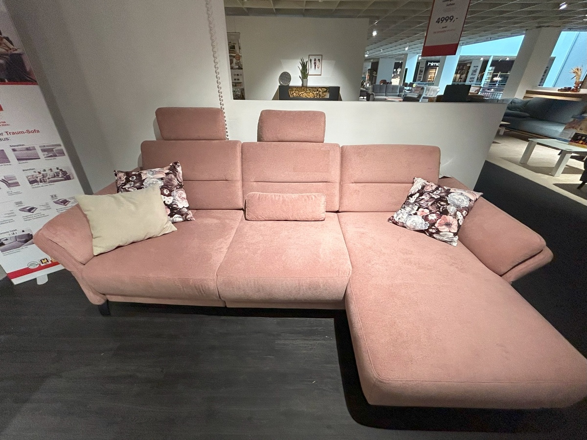 Polstergarnitur 04610014: multiCOLOR Fb. 1102 rosé, 4.28 Metallfuß 12cm schwarz, Rücken B, Sitz Konfort, AT 3, Blocksitz, Kontrastnaht Standard