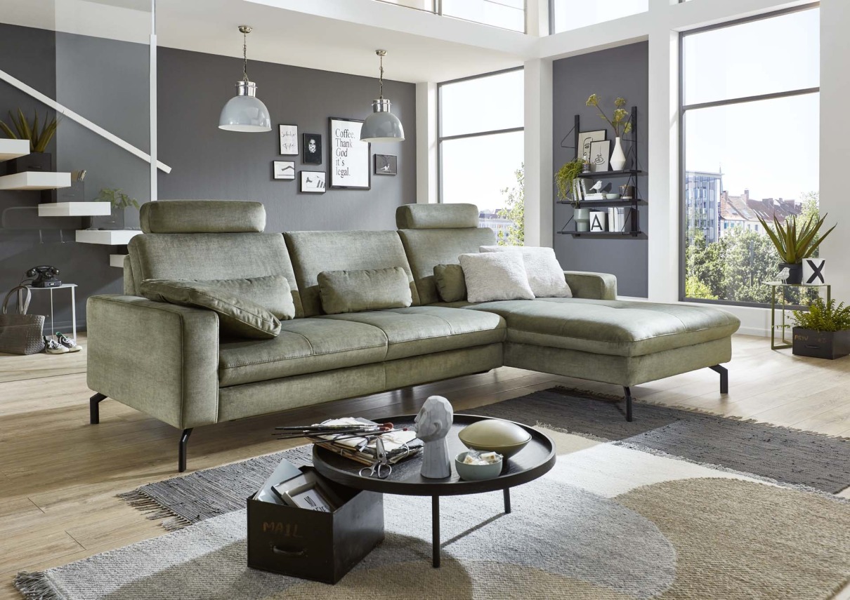 Polstergarnitur 14550413: 02/Cyber steel, Rücken echt, Federkern, Fuß W001 Metall schwarz B/H/T ca. 302x87x178cm