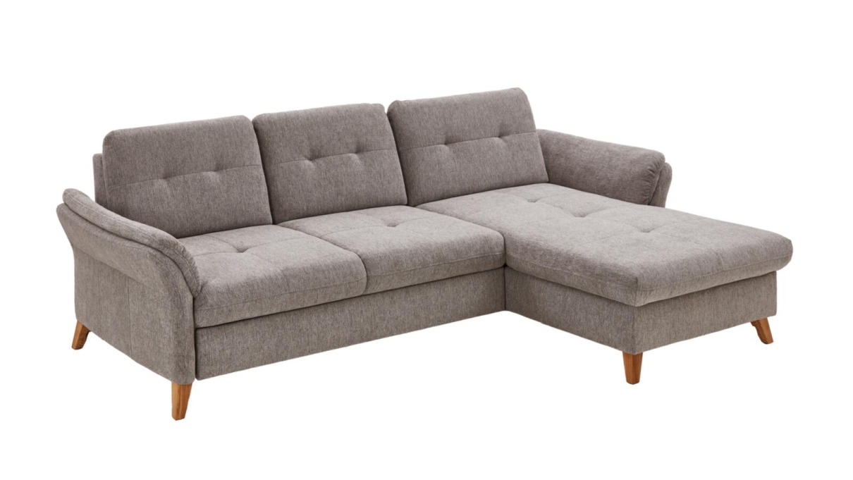 Polstergarnitur 14750003: Basic/Orlean hellgrau 8207, Rücken echt Federnkern, Holzfuß Eiche geölt, SH/ST ca. 47/68cm