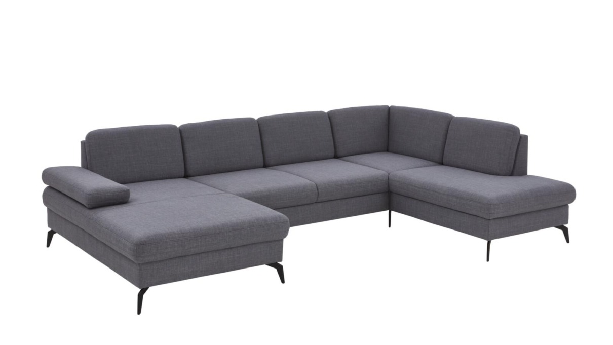 Polstergarnitur 14750004: PG02 Basic/Garett stone 20, Rücken echt AT Rasterfunktion, Sitztiefenverstellung Metallfuß schwarz matt 15cm, SH/ST ca. 47/75cm