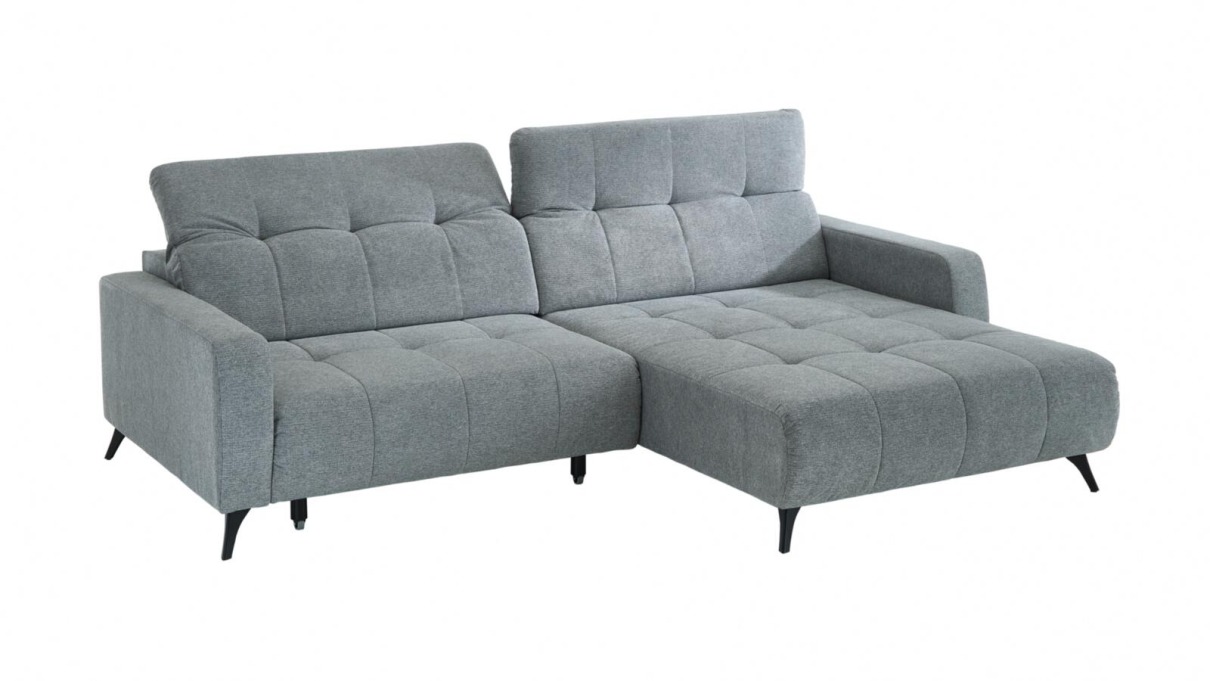 Polstergarnitur KAWOO 14490012: PG2/Aragon 90 grau, Nosagunterfederung, Schaumstoff, Metallfüße schwarz matt gepulvert Type 003 Ottomane links, ca. 203x277cm