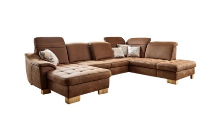 Polstergarnitur Modulmaster Pader XC: 12/Mammut nougat, Doppelsteppnaht Rücken echt, Kaltschaum, Kopfpolster- verstellung, SH ca. 45cm, Füße Wildeiche