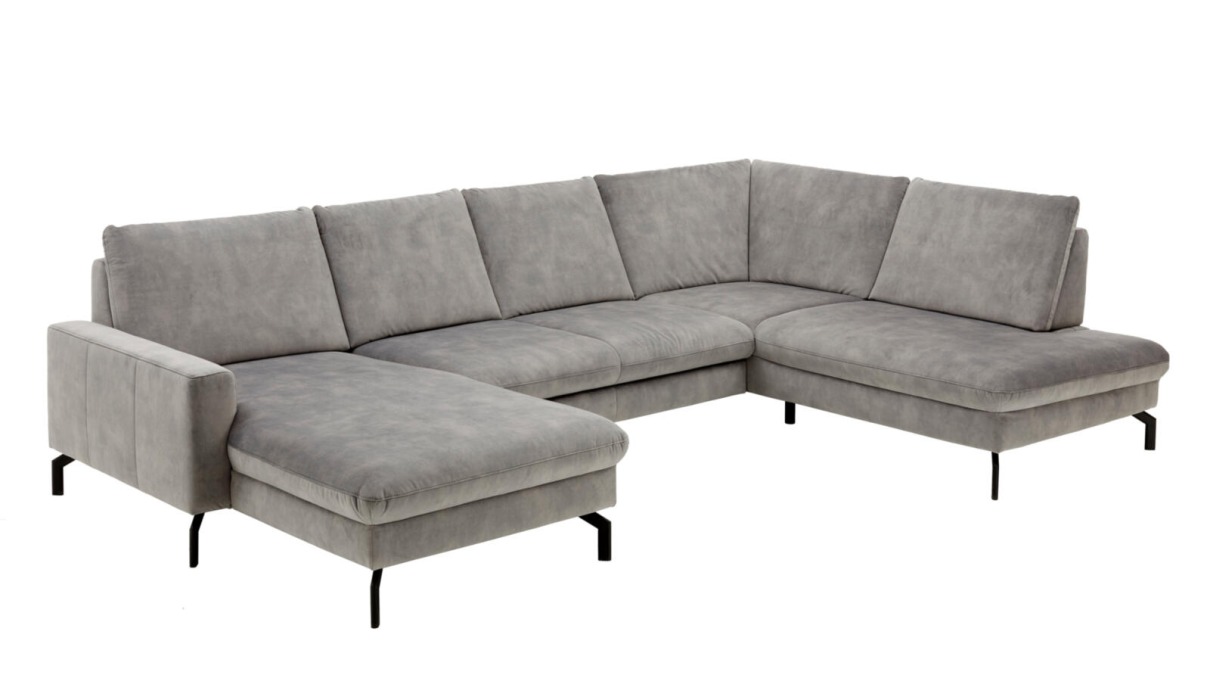Polsterprogramm Modulmaster 04850059: B/Amira (Pfotenstoff) salbei Kaltschaum, Rücken echt, Metallfuß schwarz B/H/T: ca.358x89x220cm, SH: ca.45cm