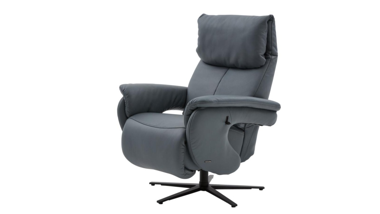 Relaxsessel EXKLUSIV Hop Sing: 24/Longlife rustika Azuro Rücken echt, Sitz - Superlastic soft Alu-Sternfuß pulverb. anthrazit, SH ca. 44cm