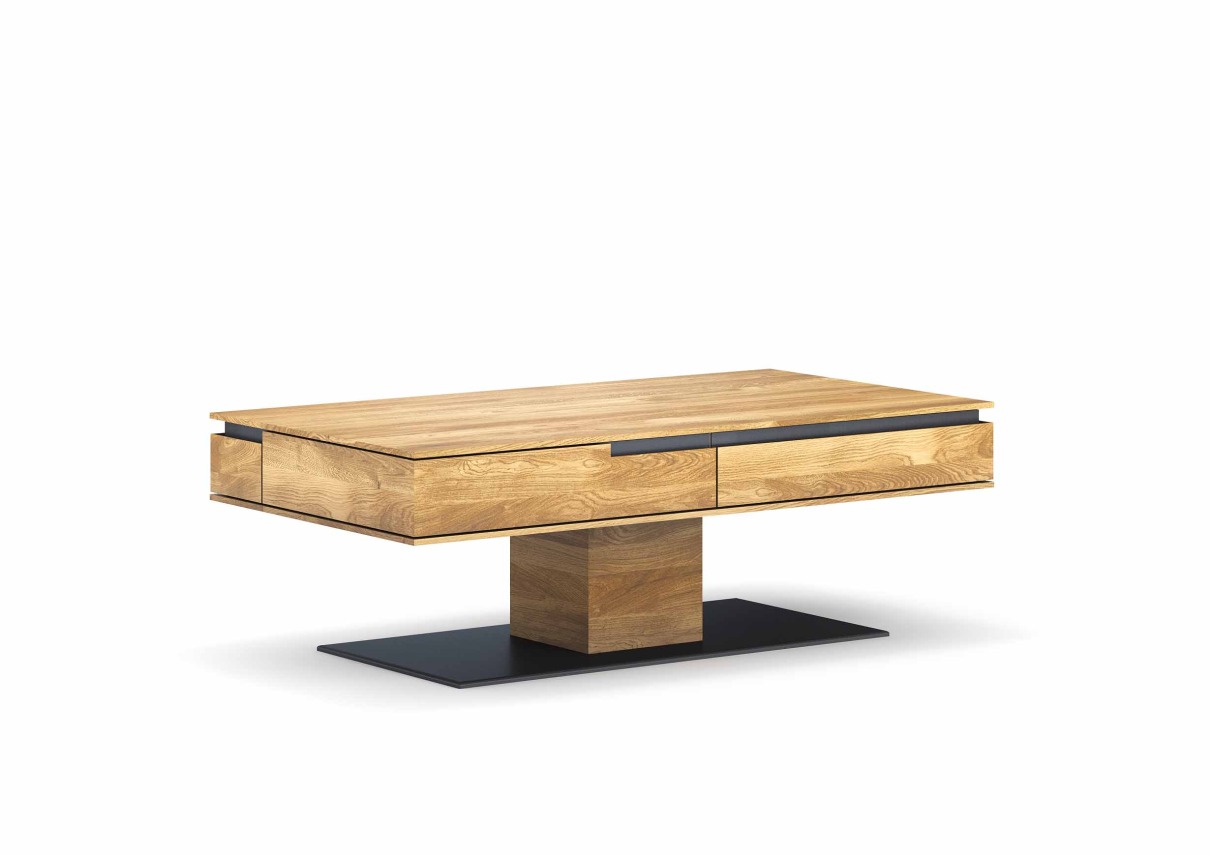 Säulencouchtisch m. Funktion 20460006: 4/rustikale Asteiche Hartwachsöl natur gebürstet RAL7021 schwarzgrau, Holzsäule m. Metallbodenplatte, einseitig höhenverstellbar