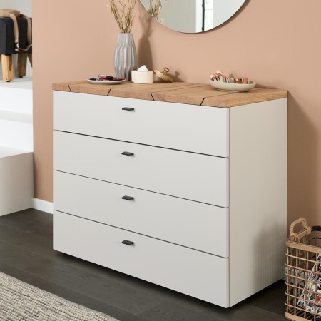 Schlafzimmer Interliving 1030: K+F: 13 - Lichtgrau Mattlack, Abs.: Casa Wildeiche geölt (Furnier), Griffe/Füße: Schiefer schwarz lackiert