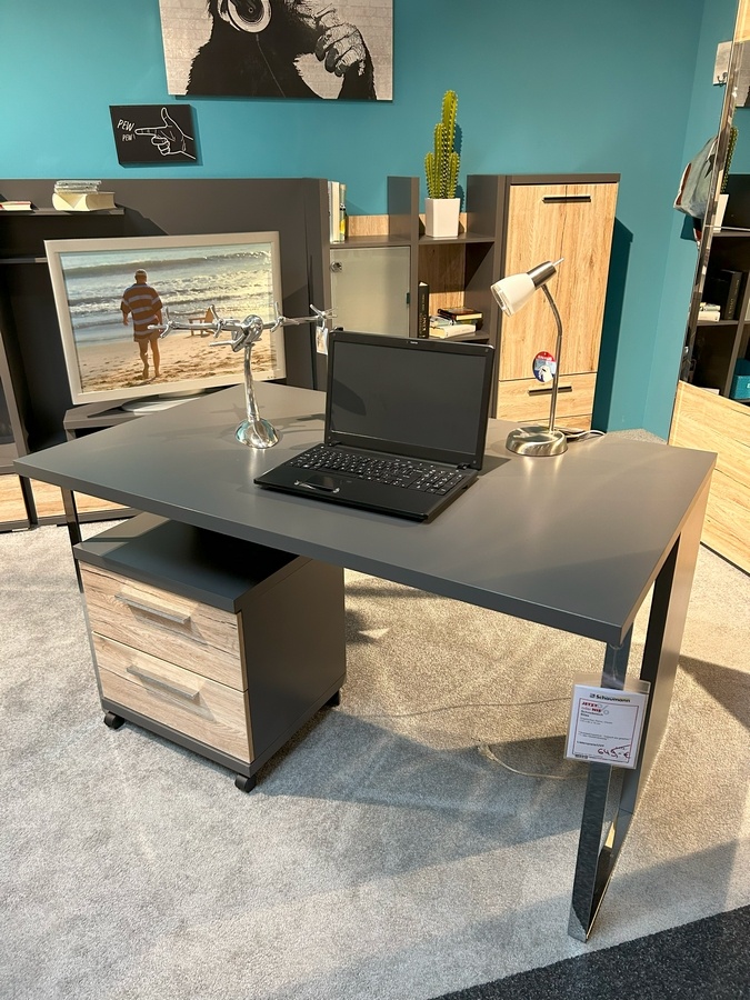 Schreibtisch Silas: Graphit/San Remo, Chrom 130 x 80 x 75 cm