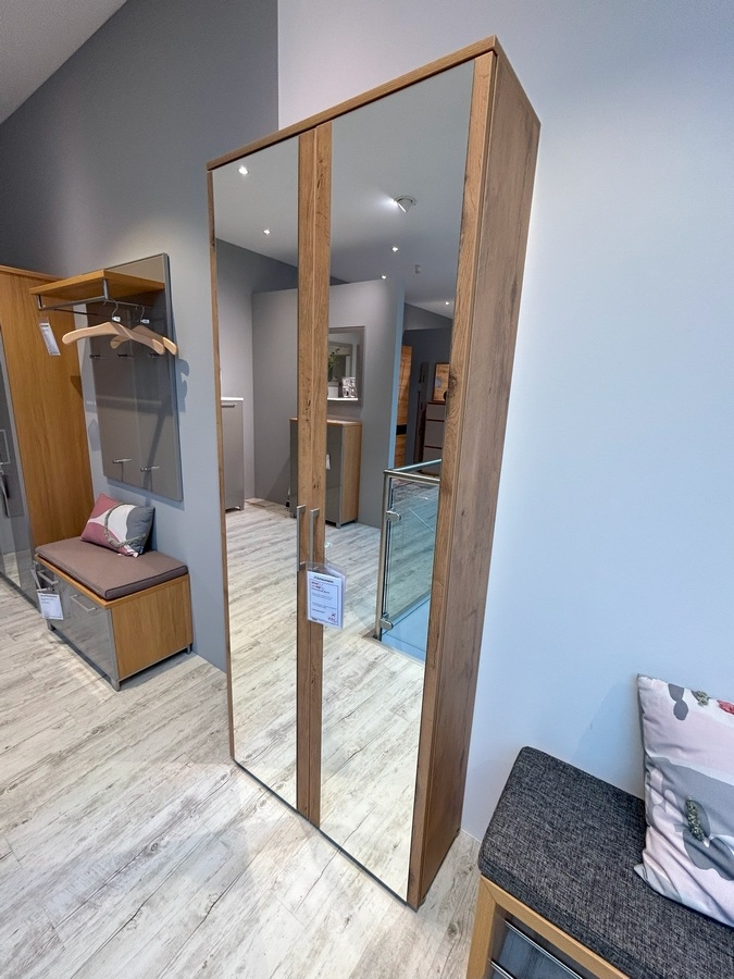 Schuhschrank Marvin : Wildeiche NB,mit Spiegel Front 1+2 ca.82x200x29 cm,Griff silber matt