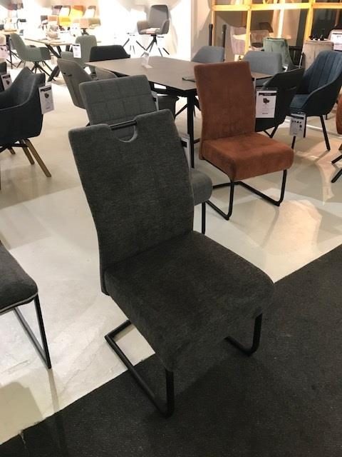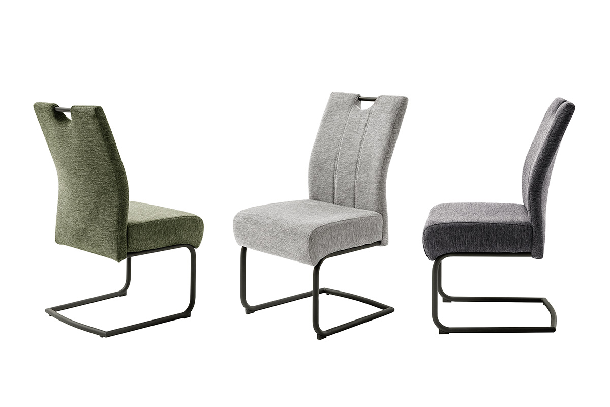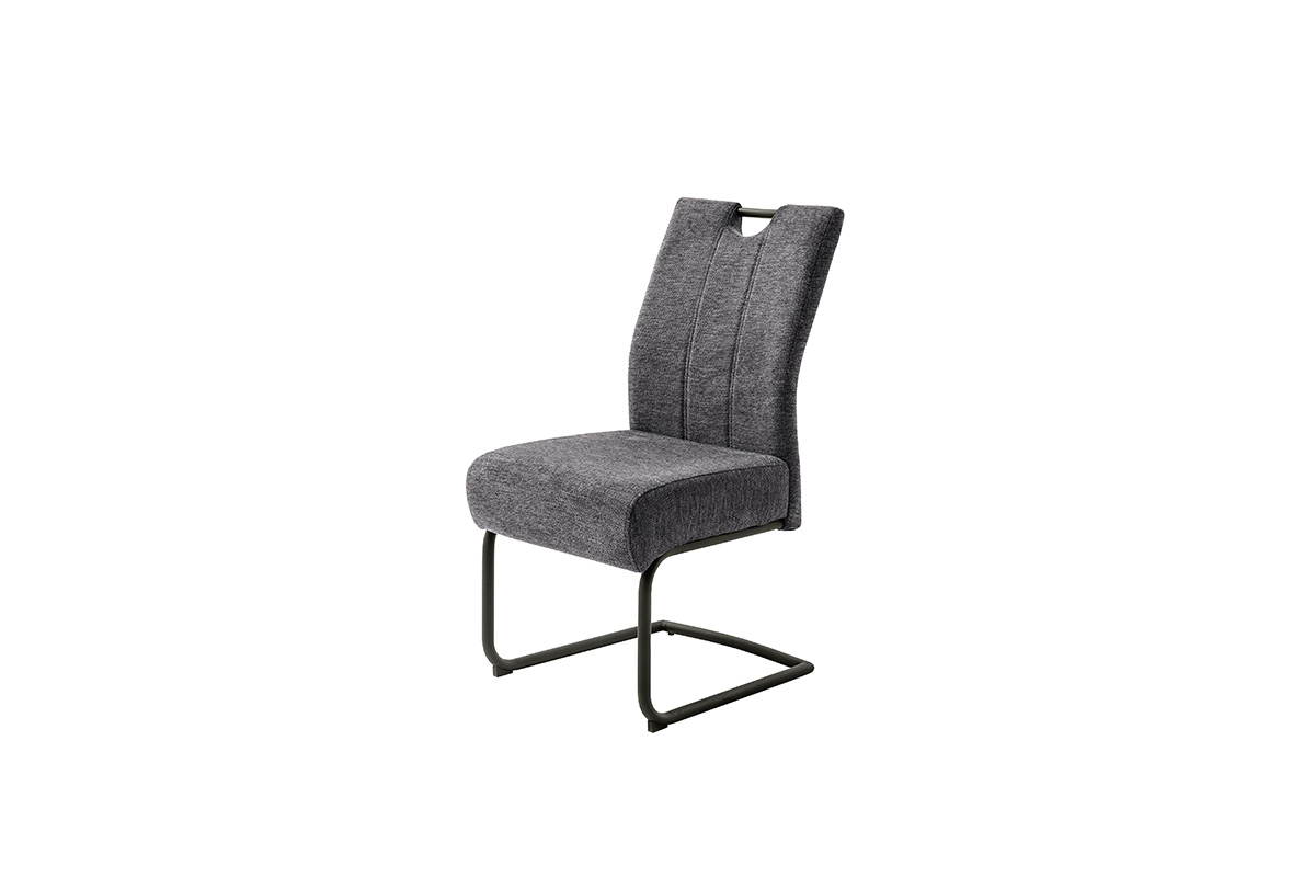 Schwingstuhl mit Griffloch 01360202: Chenille-Opt. anthrazit Rundrohr, Schwarz mat. lackiert B/H/T ca. 49x98x63 cm