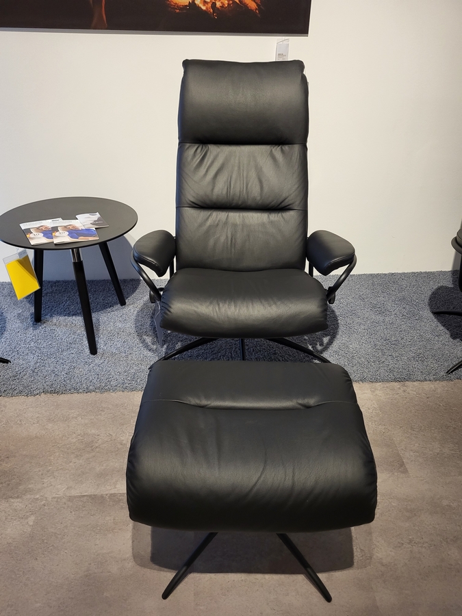 Sessel mit Hocker Tokyo Low Stand.Base: 13543450941945 Leder Paloma 094 Black 19, Matte Black 45, mit verstallbarer Kopfstütze