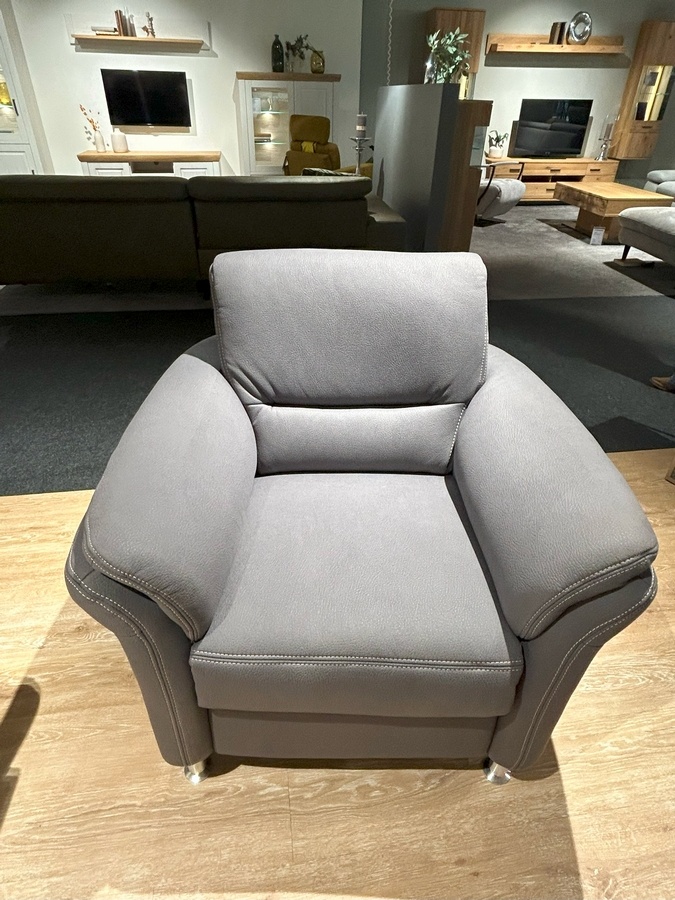 Sessel Zumba: Mammut grau, Kontrastfaden Doppelsteppnaht, Federkern, SH 49 cm, Alufuß, inkl. Akku, inkl. Premium KS