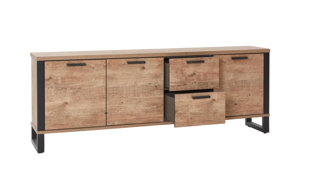 SIDEBOARD 05080088: Sideboard 3 Türen, 2 Schubkästen, Laminato Barnwood, Füße Metall H / B / T ca. 85 / 190 / 42 cm