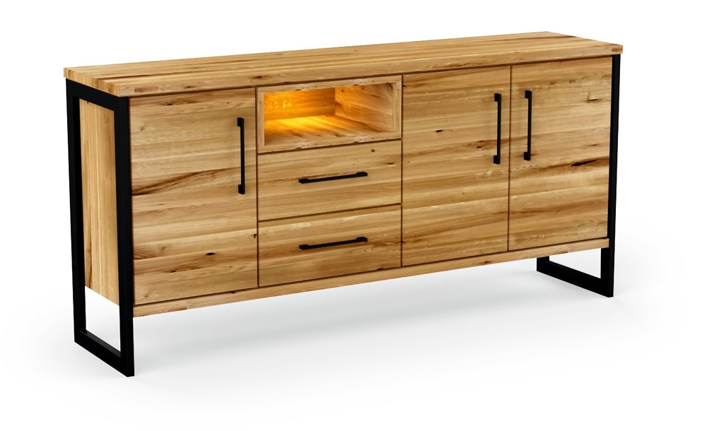 Sideboard 05310212: 39/Charakter Eiche massiv geb. Gestell & Bügelgriffe Alteisen Optik, B/H/T: ca.181x87x44cm