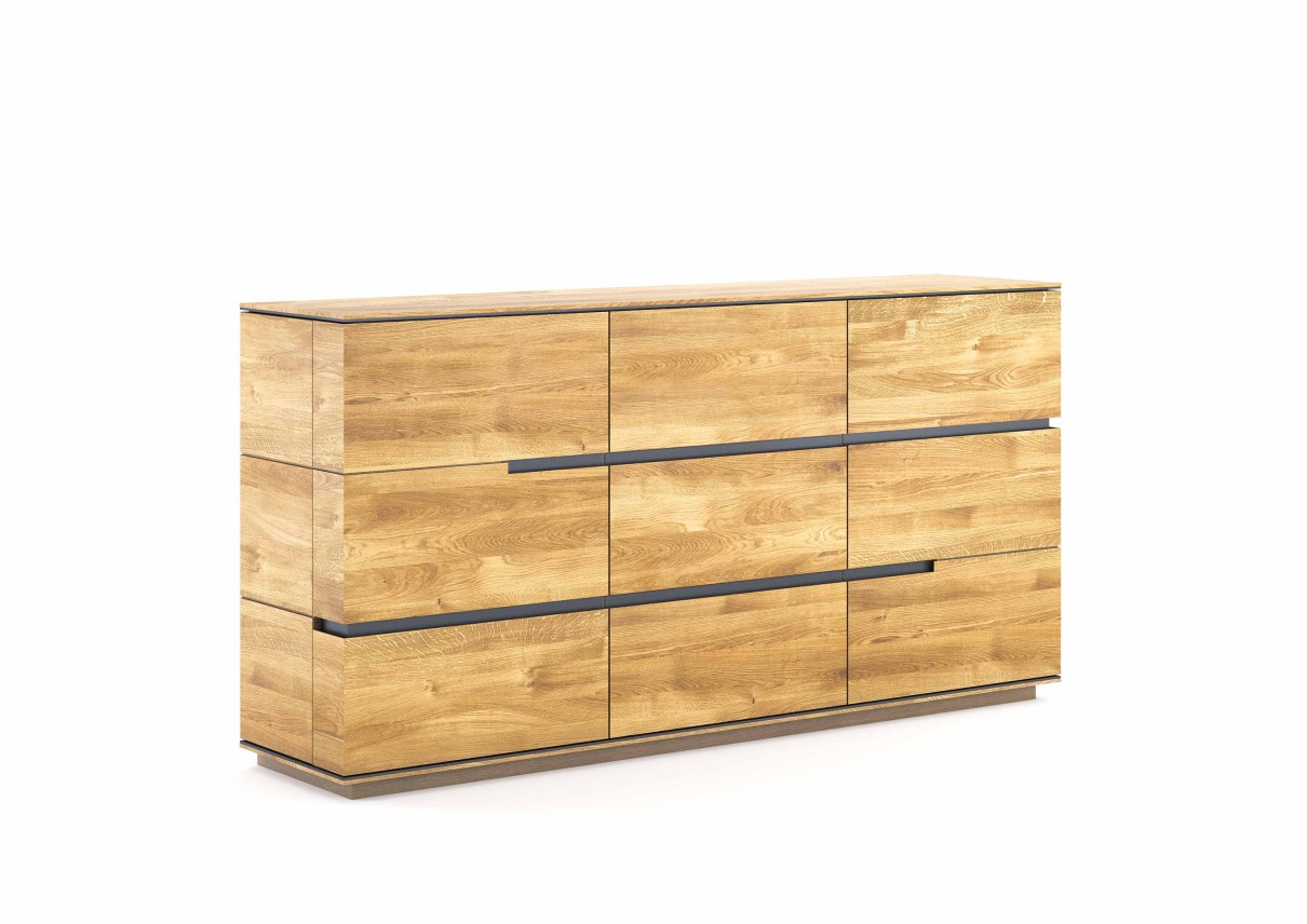 Sideboard 20460006: 4/rustikale Asteiche Hartwachsöl natur gebürstet RAL7021 schwarzgrau, Holzsockel 4.0 in Korpusfarbe, Metallleiste