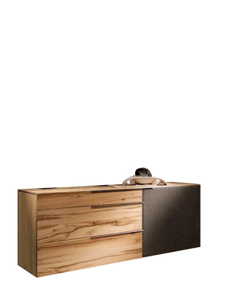 Sideboard (AS19L) V-Alpin: Eiche Altholz, Akzent anthrazit 3 Laden, 1 Tür mit Akzent B/T/H: ca. 192×51,6x82cm