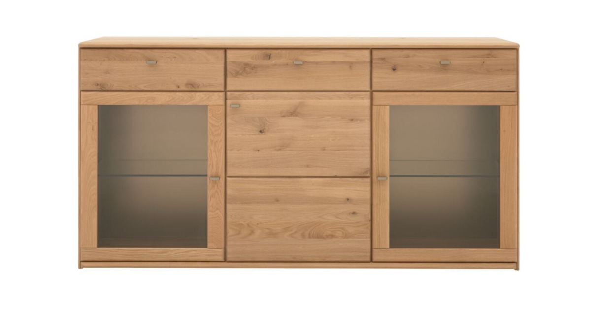 Sideboard Interliving 2028: Wildeiche massiv soft gebürstet, 3 Böden, 6 Fächer, B/H/T: ca.182x94x42cm
