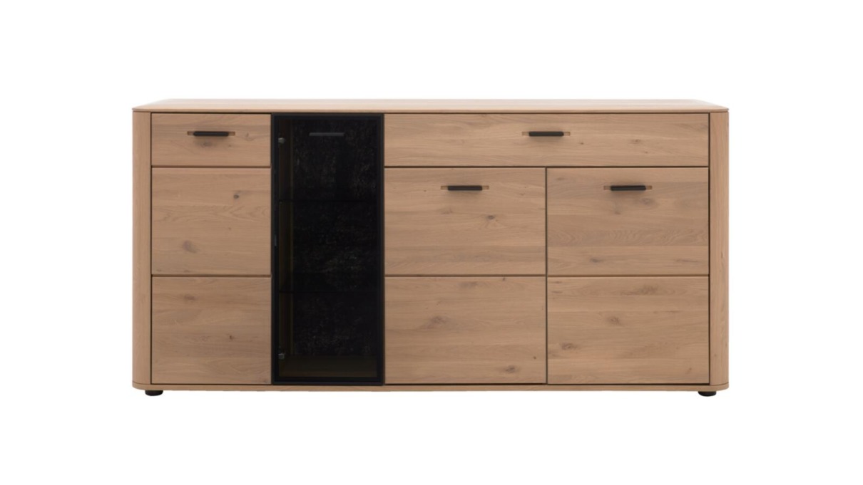 Sideboard Interliving 2030: Wolfram Grey lackiert Akzente in massiver Spaltholz-Optik B/H/T ca. 180x86x45cm