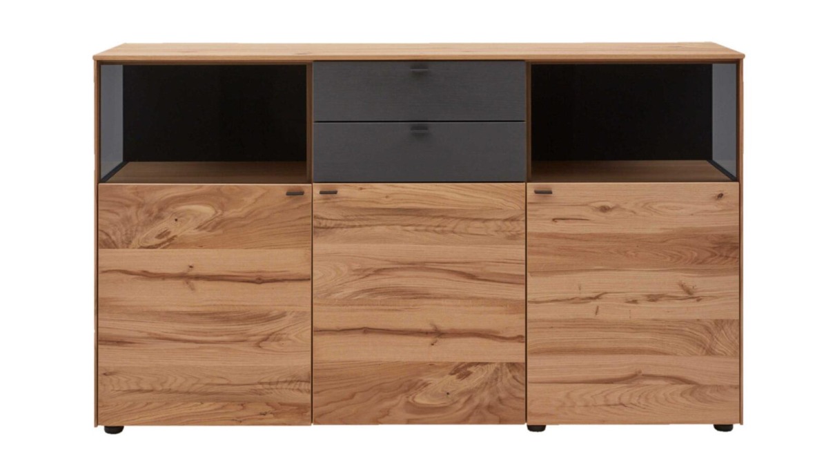Sideboard Interliving 5604: Eiche rustico hell geölt furn., Eiche anthrazit matt furn., 3T, 3 HB verstellbar, 2 SK,