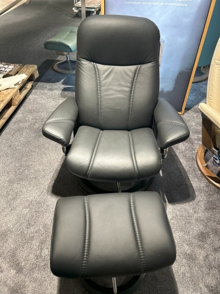 Signature Sessel (M) + Hocker Stressless Consul: 01005315, 093 Batick schwarz 19 Gestell 40 pol. Alu, schwarz gebeizt 05