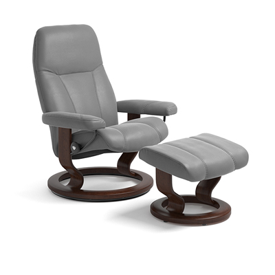Stressless-Sessel Classic m. Hocker Consul M: 1005015 093 Batick, 80 Wild Dove Holzfarbe: 05 Schwarz B/H/T ca. 76x100x71cm, SH/ST ca. 40/48cm