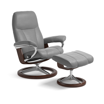 Stressless-Sessel Signature m. Hocker Consul S: 1145315 093 Batick, 80 Wild Dove Base Color: 40 Alu, Holzfarbe: 05 Schwarz B/H/T ca. 78x97x70cm, SH/ST ca. 41/47cm