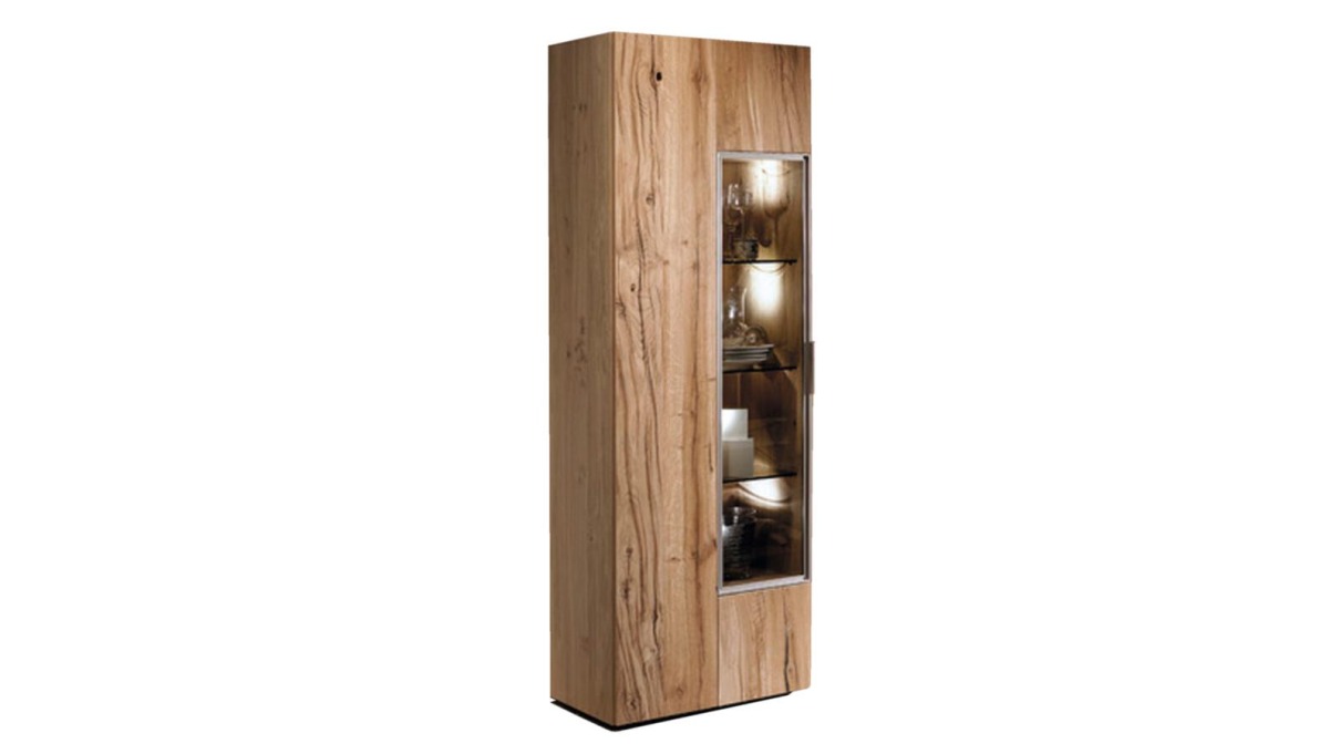 Vitrine (AV64G) V-Alpin: Eiche Altholz 1-türig, Türanschlag rechts B/T/H: ca.64x42,3x194cm