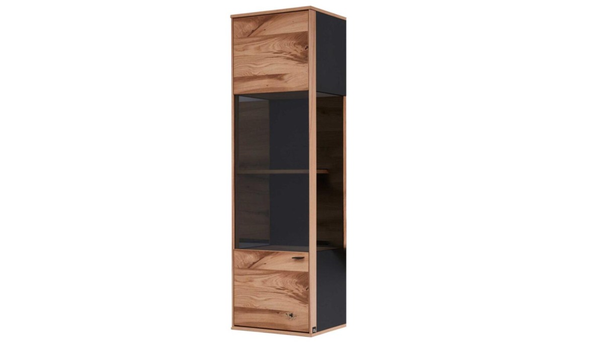 Vitrine Interliving 5604: Eiche rustico hell geölt furn., Eiche anthrazit matt furn., 3-trg. 3 HB verstellbar, 5 HB fest, 2 SK,