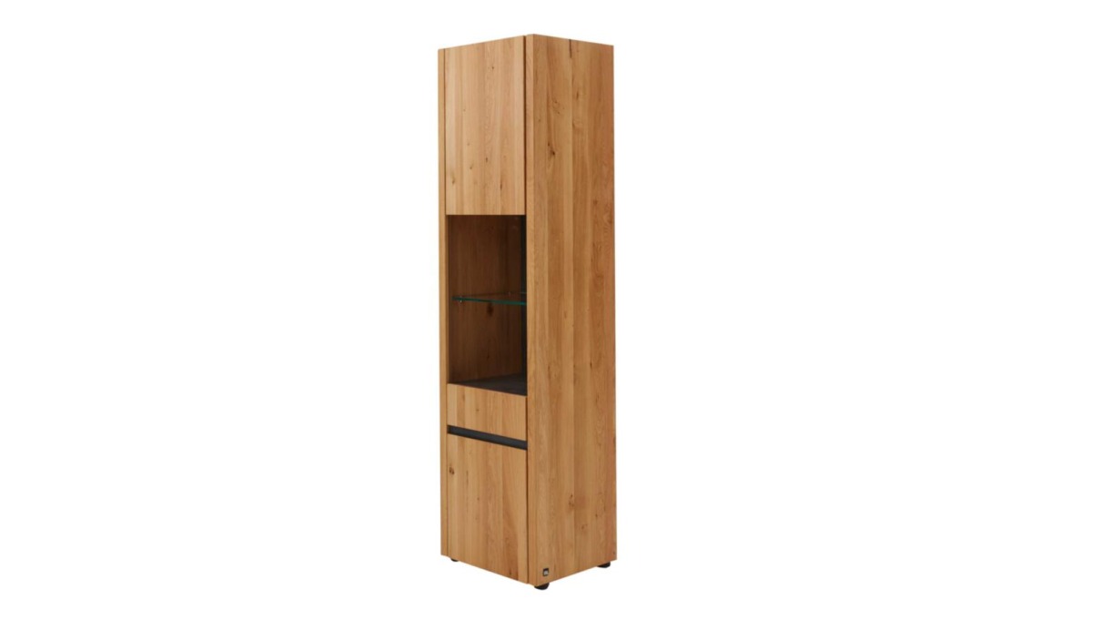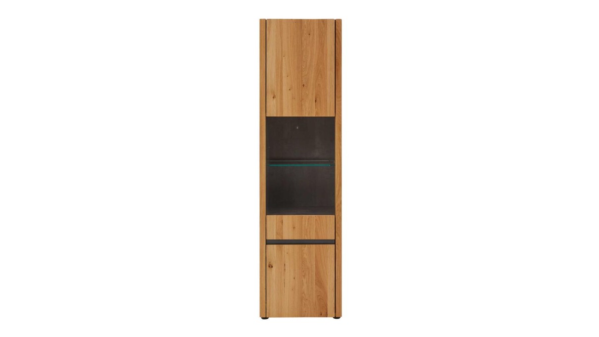Vitrine links angeschlagen Interliving 5603: 47-Wildeiche geölt, vollmassiv Oberboden in HPL Oxyde graphit, 1 Glastür, B/H/T: ca.53x197x42cm