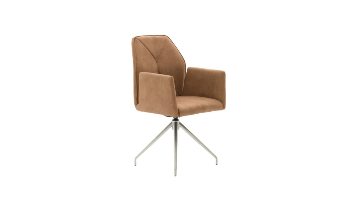 VZ Armlehnenstuhl Interliving 5104: X38-RM-AMBER-ZILMA,Mikrofaser bernsteinfarben, Gest.Edelstahl,Nosagf., Griff Edelstahl m. 360 Grad Dreh-,autom. Rückstellfkt