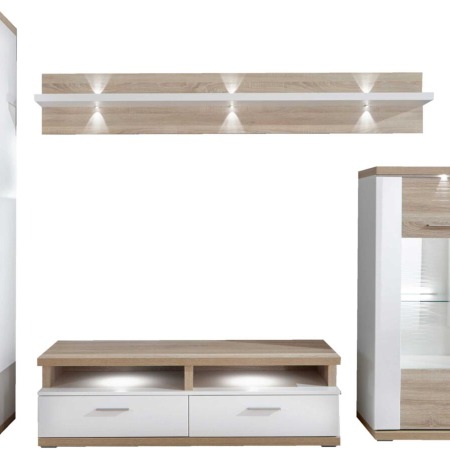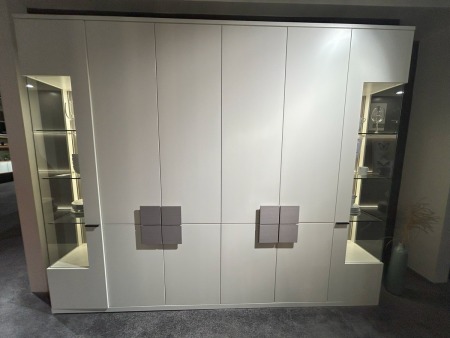 Wohnkombination 36476 Vienna: 1/Korpus und Front Lack Weiß Griff N5 schwarz matt, B/H/T: ca. 270x218x40 cm