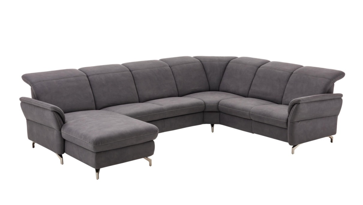 Wohnlandschaft 14480031: SOP Atlantic/ dunkelgrau, Kontrastnaht beige, Säulenfuß Alu geb., Rücken echt, SH: ca.46cm, B/T: ca.338x251cm
