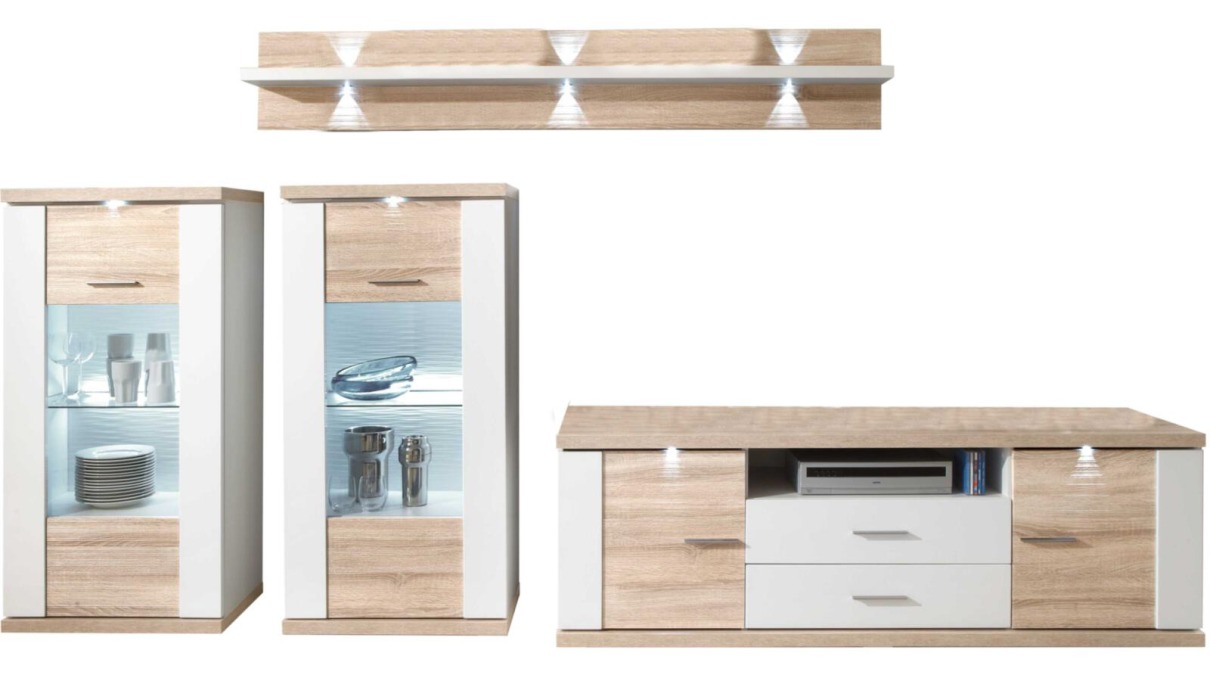 Wohnwand 02080039: Eiche Artisan/Cosmos Grey, B/H/T: ca. 322x207x52 cm